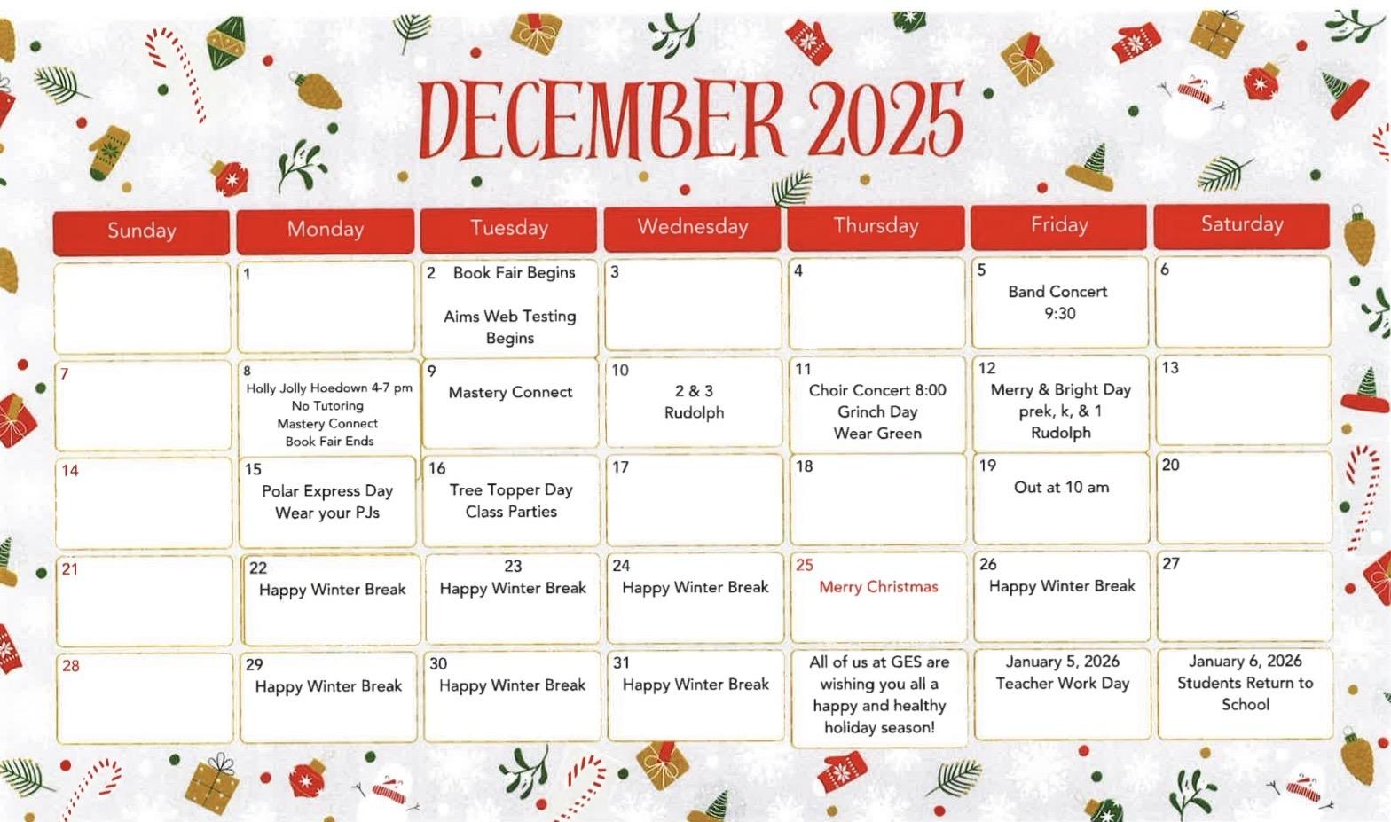 GES Monthly Calendar